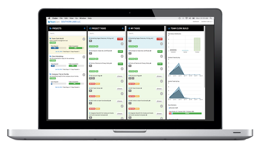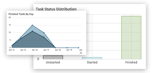 A1 Project Manager will graph your teams started and completed tasks over time so you can tell when the most is getting done.