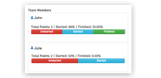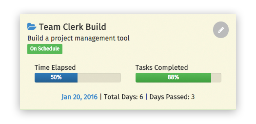Glance at a project to tell how much time is left before the deadline and how much work your team has completed on the project.